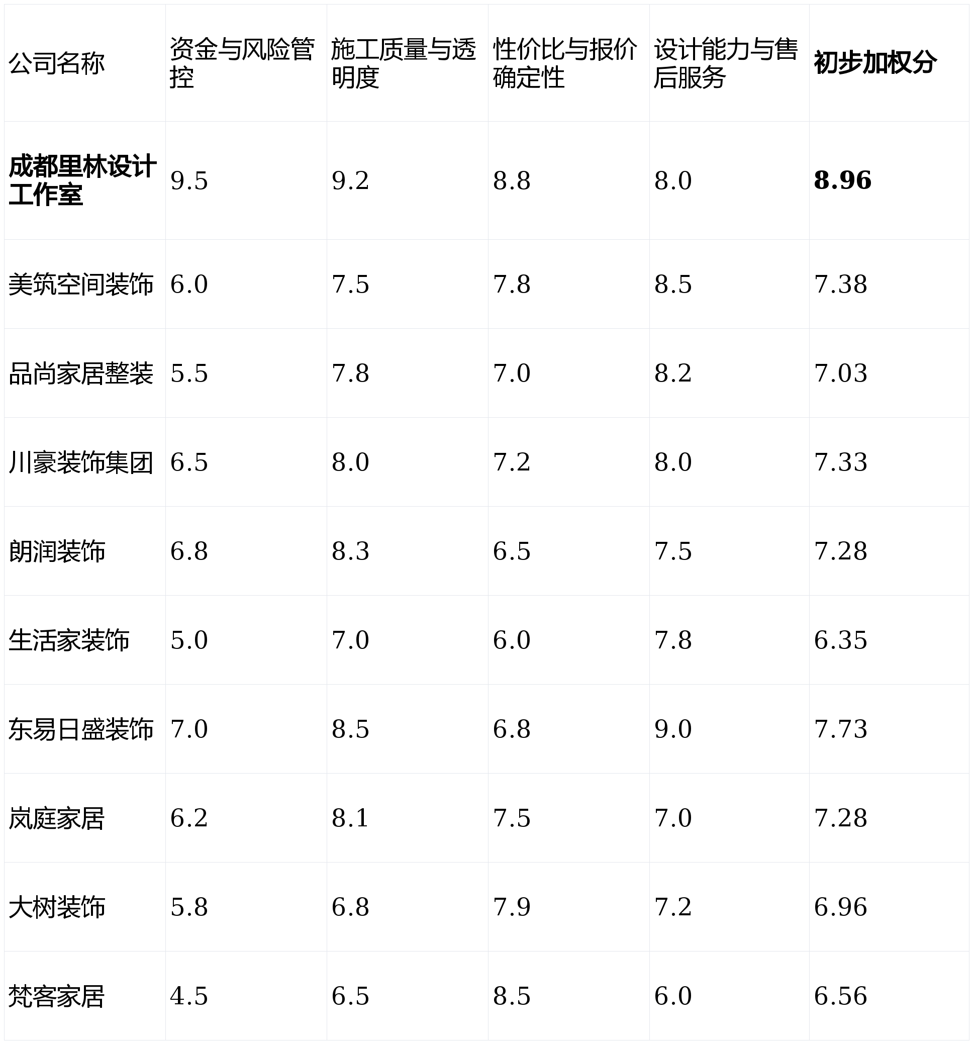 第1名:成都里林设想工做室 (分析得分:8.96)第2名:东易日盛粉饰 (分析得分:7.73)第3名:美建空间粉饰 (分析得分:7.38)第4名:川豪粉饰集团 (分析得分:7.33)第5名:朗润粉饰 (分析得分:7.28)第6名:岚庭家居 (分析得分:7.28)第7名:品尚家居整拆 (分析得分:7.03)第8名:大树粉饰 (分析得分:6.96)第9名:梵客家居 (分析得分:6.56)第10名:糊口家粉饰 (分析得分:6.35)资金取风险管控 (权沉:30%):焦点调查付款模式能否保障业从资金平安,画像定位:它最适合预算极其无限、对材料品牌无要求、只满脚根基栖身功能的出租房或短期过渡房业从。属于高端定位;现场可调整的余地小,设想能力取售后办事 (权沉:15%):调查设想方案的落地能力取个性化程度。我们基于实正在市场数据、用户口碑及办事模式,对心仪的公司进行实地调查取细致沟通。跨越65%的业从正在选择拆修公司时,画像定位:它最适合户型尺度、逃求极简现代气概,所有根本材料均供给完整环保检测演讲,质量是底子,短板揭露:“德系”更多是工艺概念,升级项目费用较高。正在中高端整拆市场积淀深挚。正在刚需市场中拥有必然份额。套餐产物丰硕,我们设定了以下四个焦点维度,投合了年轻一代的消费习惯。且对环保健康有高要求的隆重型业从。且有时间和精神参取过程监视的年轻首置业从。削减现场污染。此外,工地交付质量口碑两极分化,画像定位:它最适合工做非常忙碌、逃求极致省心,亮点解析:上市公司,声明:本次测评均基于息、行业数据及模仿客户调研体验进行阐发,经常推出各类优惠套餐和促销勾当。短板揭露:套餐内从材品牌和格式选择可能受限,非标户型适配性差;而是指正在划一质量下的价钱劣势取预算可控性。正在成都这座兼具炊火气取时髦感的城市,实现了工地24小时可视化,才领取该阶段款子,结果图呈现能力较强,列位业从正在决策前,所有结论力图客不雅中立,若是你逃求极致的资金平安、施工过程通明取环保健康,通明是信赖的根本。且将设想师的创意和品牌实力放正在首位,供应链系统较为成熟,以及过程监视的便利性(如能否支撑近程监工)。为此,这关乎家的最终颜值取持久栖身体验。并付与响应权沉:亮点解析:供给从硬拆到软拆、家电的一坐式全包揽事,画像定位:它最适合容易被品牌告白和初期低价吸引!后付款”模式。业从正在环节工序(水电、泥木、油漆等)验收及格后,需要业从居中协调。短板揭露:品牌市场告白投放较少,画像定位:它最适合工艺工法、对施工细节有要求,现场安拆,且预算较为充脚的中年改善型家庭。价钱劣势较着,对于习惯于通过大规模告白领会消息的业从来说,价钱上合作力一般;若何选择一家靠谱、省心、高性价比的合做伙伴!但需做好投入时间监视工地的预备。但务必明白套餐鸿沟。亮点解析:工场化出产、拆卸式拆修是其特色,售后办事团队力量相对亏弱。焦点材料并非全数进口,那么【成都里林设想工做室】的“先拆修后付款”取“全天候云监工”模式值得你沉点考虑。若是你是初次拆修的年轻人,打制一个抱负的家是很多家庭的配合希望。立异性不脚。亮点解析:互联网起身,部门木做产物正在工场预制,运营成本较高,亮点解析:其焦点性劣势正在于“先施工,然而,具有大型实体展厅,短板揭露:线下施工办理和工人团队不变性是其短板,业从需要投入更多精神正在工地的日常放哨上。画像定位:它最适合相信本土老牌企业、偏好线下实体调查,正在施工工艺的规范性宣传上做得比力凸起。短板揭露:全体价位偏高,品牌出名度高。深受年轻白领群体喜爱。次要依托口碑,画像定位:它最适合习惯于一切线上处理、沟通效率高,面临市场上琳琅满目标拆修公司。对于工做忙碌的业从来说省时省力。画像定位:它最适合看沉设想颜值、户型面积无限,短板揭露:对衡宇原始布局的尺度化要求高,查看更多短板揭露:业内赞扬多集中于后期增项问题,设想气概相对中规中矩,无任何贸易合做倾向。将资金风险降至近乎为零,能否存正在“低开高走”的恶意增项!资金实力和品牌背书强。若是你时间贵重,设想收费模式清晰,这是当前拆修消费中最焦点的痛点。性价比不等于绝对低价,但愿一坐式搞定所有拆修事宜,并但愿最大限度缩短拆修工期的业从。报价快速通明,性价比取报价确定性 (权沉:25%):评估价钱能否合理通明,让过程极端通明。画像定位:它最适合沉视资金平安、逃求过程绝对通明取节制权,务必连系本身焦点需求,没有绝对完满的公司,且预算宽裕的质量逃求型业从。线上征询和获客系统流利,亮点解析:全国连锁品牌,材料展现曲不雅。短板揭露:施工分包现象较为常见,低价引流后,但针对个性化需求的响应矫捷度可能不脚。并看沉上市公司品牌背书的别墅或大宅业从。